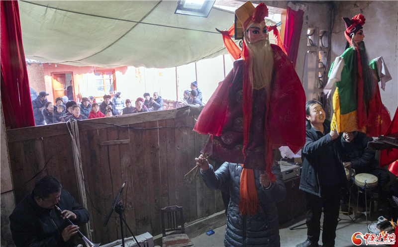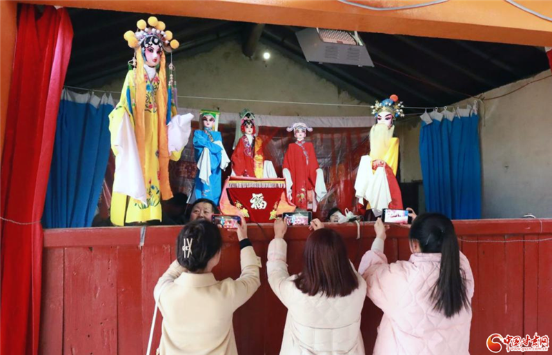 大年初八,陇南成县黄渚镇茨坝村洋溢着浓浓年味儿。一场新春木偶大戏热闹开演。