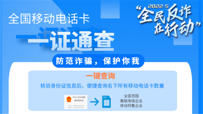 全国移动电话卡“一证通查”服务 处置涉诈高危电话卡7760余万张