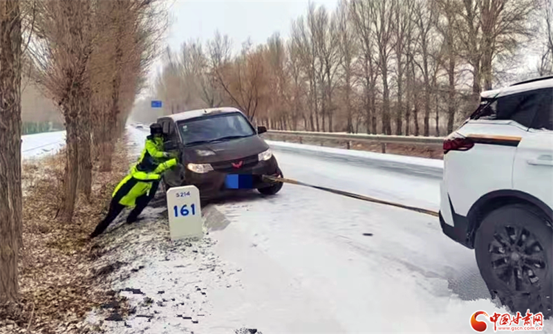 肃北县公安局公婆泉边境检查站民警在执勤卡口执勤