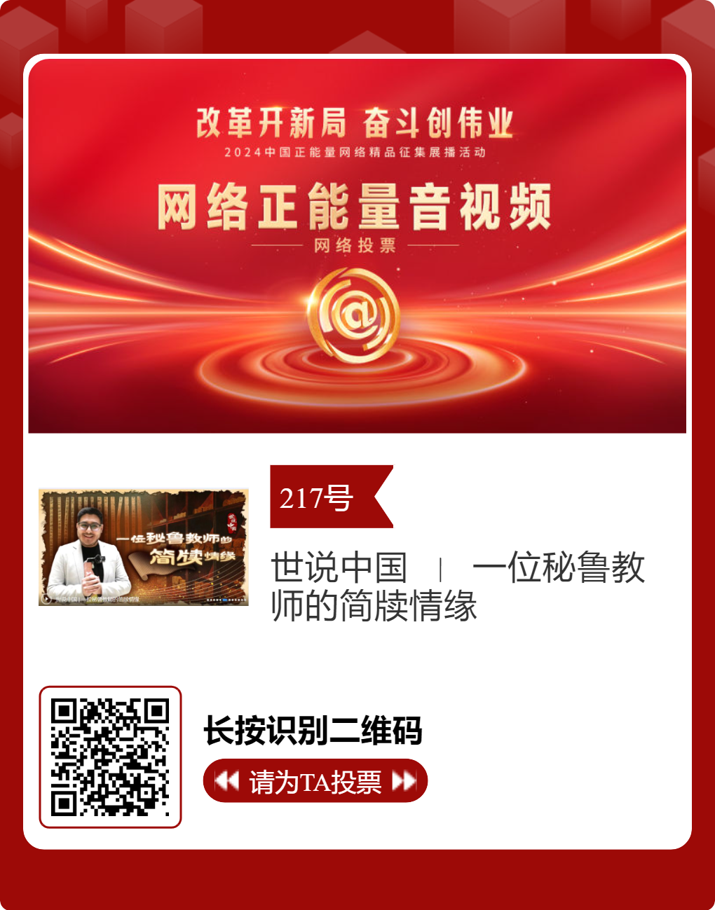 投票方式:点击标题或长按识别图片中二维码进入投票链接