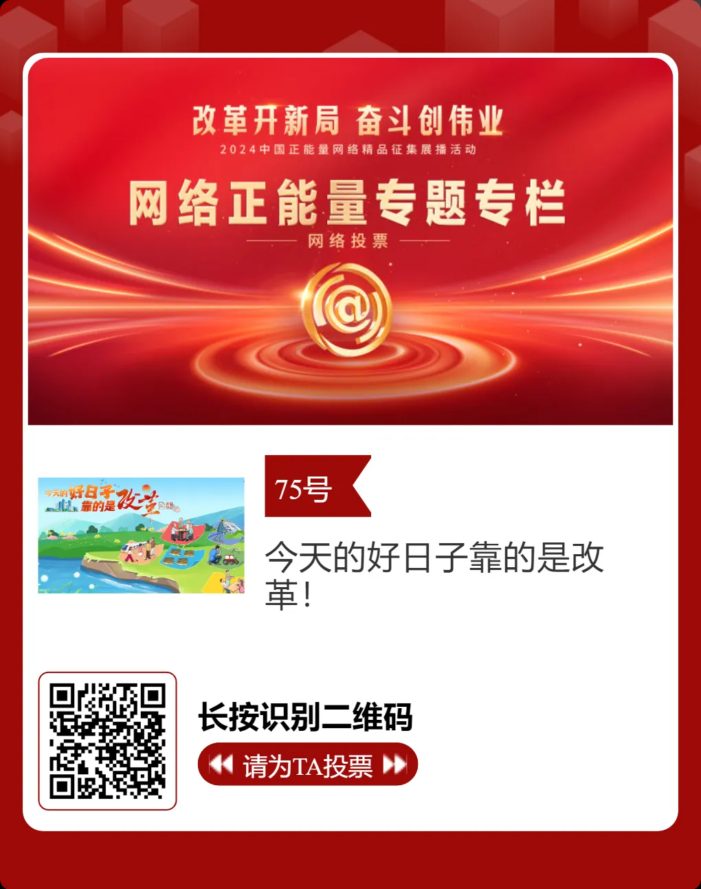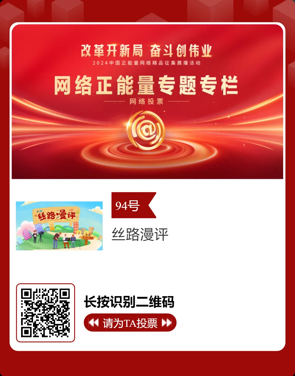 2月15日,由中央网信办主办的2024中国正能量网络精品征集展播活动正式启动网络展播投票。此次活动旨在汇聚网络正能量,展示新时代的奋斗精神与创新成果。