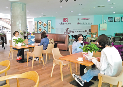 广州中医药大学里的悦读中医书吧为同学们提供了舒适的阅读氛围。