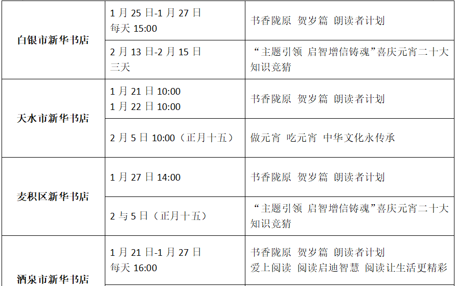 收藏!凯发k8省各地新华书店春节期间活动来了(附表)